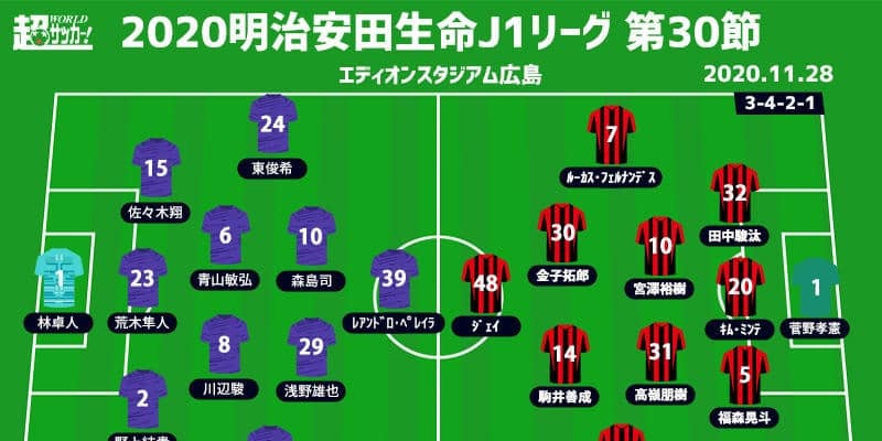 【明治安田生命J1リーグ第30節】 2020年11月28日(土) 14:00キックオフ サンフレッチェ広島(7位/47p…