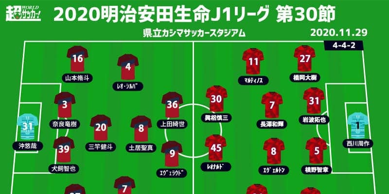 【明治安田生命J1リーグ第30節】 2020年11月29日(日) 15:00キックオフ 鹿島アントラーズ(5位/52pt…