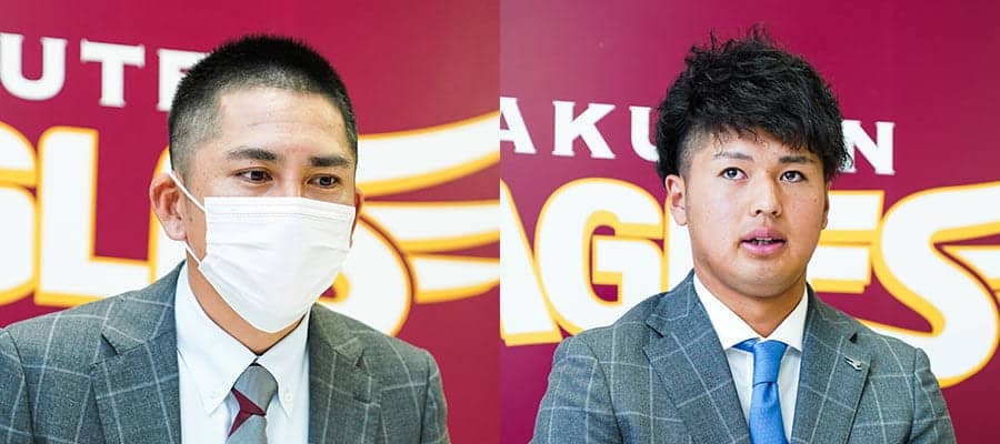 会見に臨んだ楽天の福山博之(左)と黒川史陽【写真提供:楽天野球団】