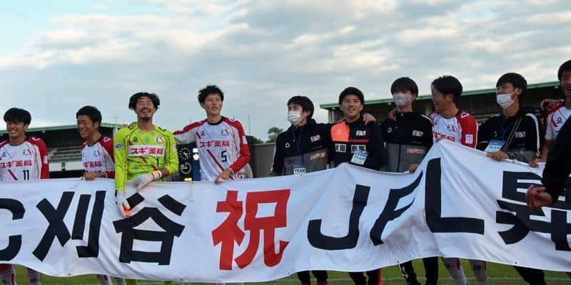 小林亜星が1966年に作詞・作曲した、ブリヂストンタイヤのCMソング『どこまでも行こう』。それは、東海リーグ所属のFC刈谷の応援歌でもあった。11月23日に千葉県市原市のゼットエーオリプリスタジアムで開催された、全国地域サッカーチャンピオンズリーグ(以下、地域CL)第3節。第2試合に勝利して今大会2位となり、JFL昇格が決まった時、刈谷の選手たちがサポーターに向かって「どこまでも行こう」と歌い始めたのである。