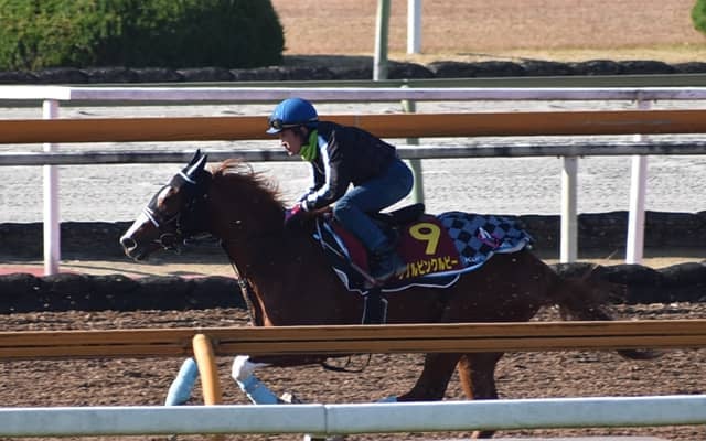 阪神芝1400mの新馬戦を快勝したシゲルピンクルビー(栗東・渡辺薫彦厩舎)。阪神ジュベナイルフィリーズ(12月13日・阪神芝1600m)に登録はしており、現時点では抽選対象ではあるが、その1週前追い切りを今朝2日に行っている。