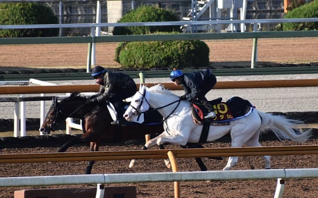 デビューから3連勝中のソダシ(栗東・須貝尚介厩舎)。真っ白な馬体がひと際目立つ存在感となっているが、今朝2日は阪神ジュベナイルフィリーズ(12月13日・阪神芝1600m)に向けた1週前追い切りを行っている。