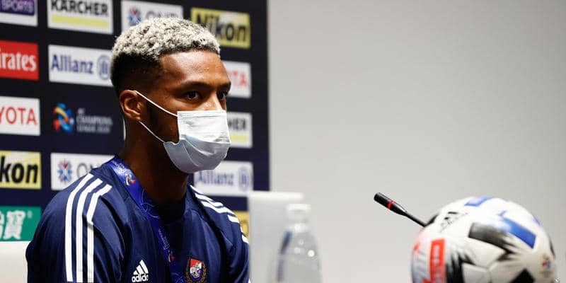 3日、AFCチャンピオンズリーグ(ACL)のグループH最終節のシドニーfC(オーストラリア)戦を前に、横浜F・マリノスのFWオナイウ阿道が記者会見に出席した。