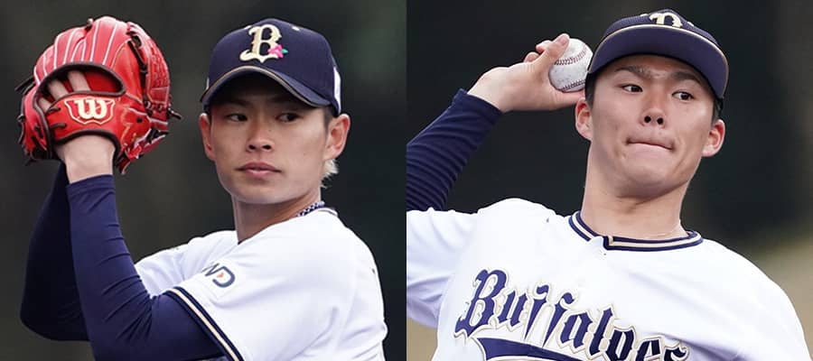 オリックス・山岡泰輔(左)と山本由伸【写真:荒川祐史】