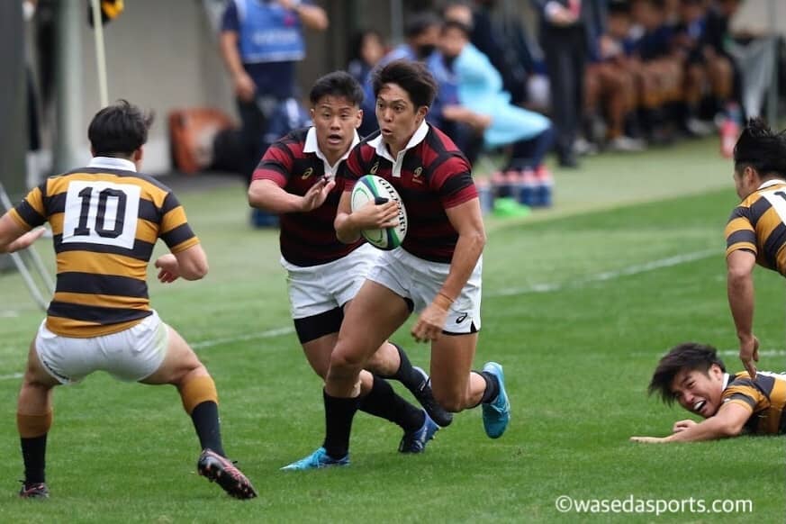 戦力もそろった。早慶戦では、けがの影響で欠場していたフランカー相良昌彦(社2=東京・早実)が復帰し、期待の新星である伊藤大祐(スポ1=神奈川・桐蔭学園)が対抗戦初出場。さらに、河瀬諒介(スポ3=大阪・東海大仰星)が今季初めてFBとしてのスタメン復帰を果たした。河瀬はトライを挙げるなどの活躍を見せ、その存在感を改めてアピール。万全の状態となり今節を迎える早大フィフティーンは、昨季の『日本一』をスタメンとして知るメンバーが8名残っているまさに盤石の布陣だ。丸尾主将率いるFW陣が、ここまでの対抗戦で91%と高い成功率のラインアウトやブレイクダウンの強さでボールを維持し、BKにつなぐ。トライゲッターのWTB古賀由教(スポ4=東福岡)や安定感のあるプレーが持ち味のCTB長田智希(スポ3=大阪・東海大仰星)らを擁するBK陣は今年も高い得点力を誇り、『BKの早稲田』の名に恥じぬ仕上がりだ。武器であるフィールドを広く使った展開ラグビーで、明大のゴールラインを脅かす。