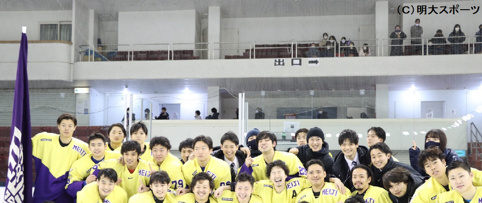 泣いても笑っても最上級生にとっては最後の試合。ここまで全勝の中大に2点を先制された第2ピリオド、FW佐久間雄大(政経3=白樺学園)とFW徳田滉也主将(政経4=武修館)の意地のゴールで同点とする。続く第3ピリオドではFW唐津大輔(法2=日光明峰)が2得点と躍動するも、中大の攻撃陣を止められず。最終スコア4-5での敗戦となり、リーグ戦4連覇はかなわなかった。