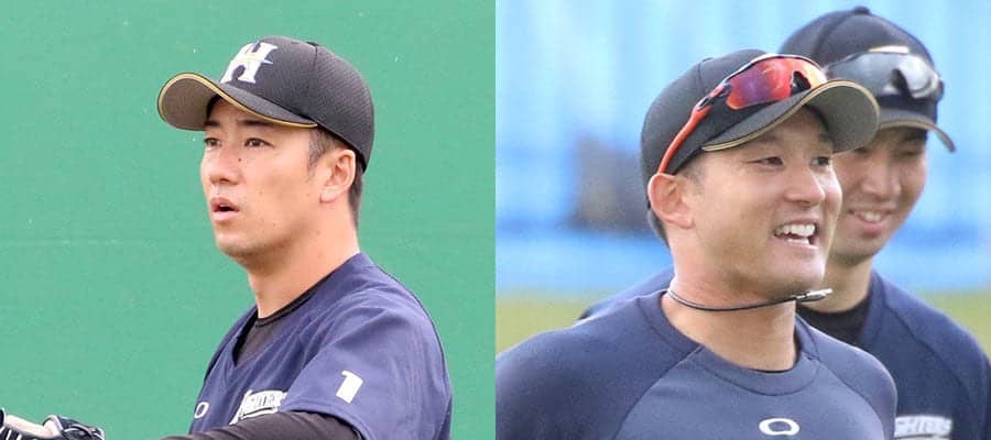 日本ハム・斎藤佑樹(左)と杉谷拳士【写真:石川加奈子】