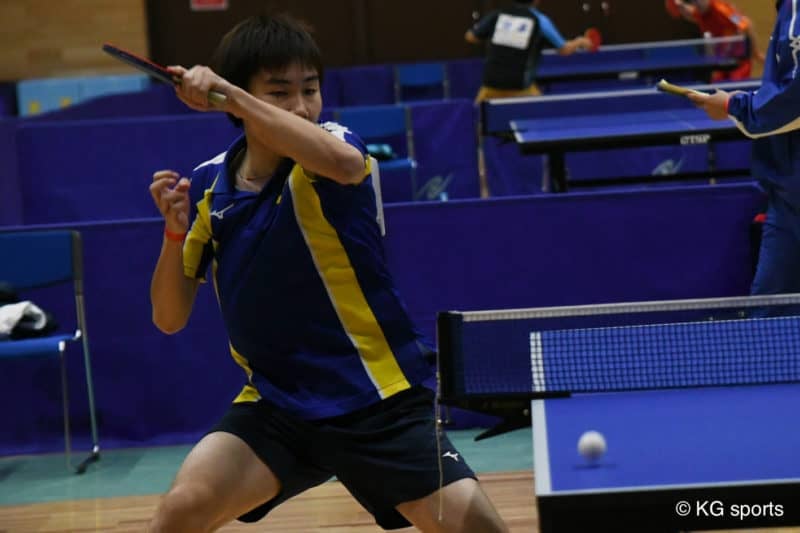 <写真・強打する吉田> 12月12日、滋賀県YMITアリーナにて第6回オール西日本大学卓球選手権大会(個人の部)が行われ…
