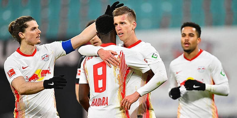 開始10分にポウルセンのポストプレーからザビッツァーが最初の枠内シュートを放つと、その後は最前線のポウルセン、トップ下のダニ・オルモが足元への縦パスや斜めのパスをうまく叩いてウイングや3列目の選手が前向きな仕掛けからフィニッシュに繋げる。