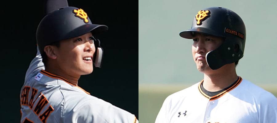 巨人・石川慎吾(左)と小林誠司【写真:荒川祐史】