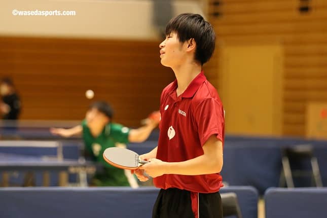 全体的に考えが甘いというか…。早稲田のチーム内ではミスがあってしまうボールに対しても、他のチームは一本でも多く返してくるというところがあって。自分が先にミスをすることが多かったので、何本も連続で打つということが課題の1つです。あとは、ラリーだけではなくて、サーブレシーブという卓球のはじまりのところを徹底していかないと、中堅層には勝てても、自分よりも格上の人には負けてしまうので、そこも考えてやっていきたいなと思います。