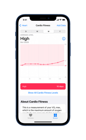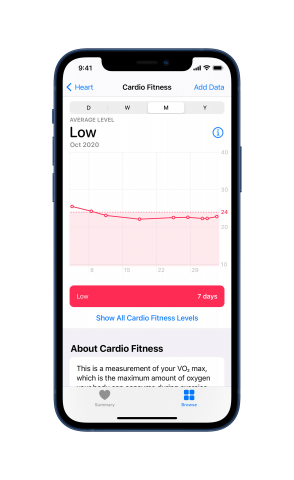 こうしたアップデートについてAppleのヘルス担当上級副社長、サンバル・デサイ博士は 「最大酸素摂取量の重要な点は、実際に打つてだてがある、という点です。その鍵となるのは、より多く運動をし、その強度を上げることで、実際に改善が見られるということです」と説明。
