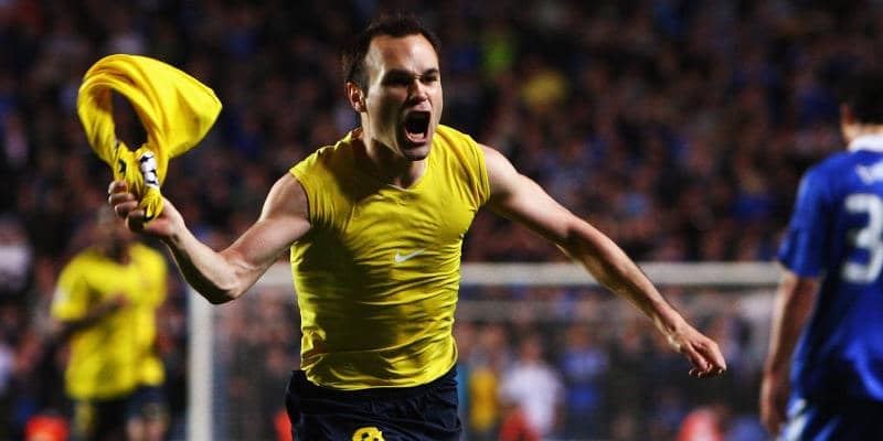しかし、エトーの後方にいたFWリオネル・メッシがボールをキープすると、ボックス外のゴール正面にいたイニエスタにパス。グラウンダーのパスに対してイニエスタは迷うことなく右足を一閃。無回転のボールはぐんぐん伸びていきゴール上段の右隅へ。名GKであるペトル・チェフが反応するも、ボールは右手をかすめて、ネットを揺らした。