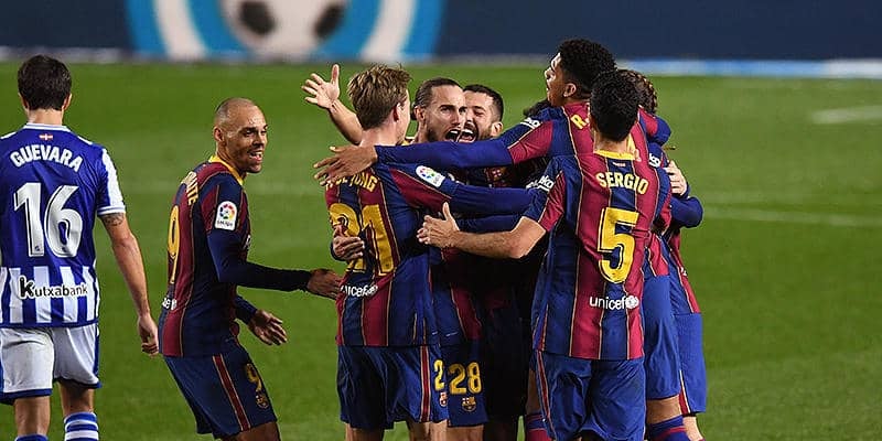 その後はソシエダがボールを握って幾度となくバルセロナゴールに迫ったものの、これ以上取りこぼしが許されないバルセロナは最後まで高いプレー強度を保って相手の反撃を何とかしのぎ切った。そして、首位ソシエダとの接戦をモノにしたバルセロナが久々のリーグ連勝を飾っている。