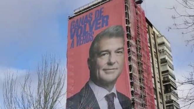 ラポルタ氏はレアル・マドリーの本拠地サンティアゴ・ベルナベウの近くに自身の巨大な横断幕を掲げたのである。