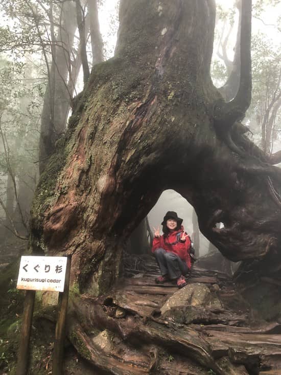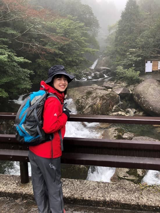 屋久島へハイキングに訪れた際の弘中さん(写真=本人提供)