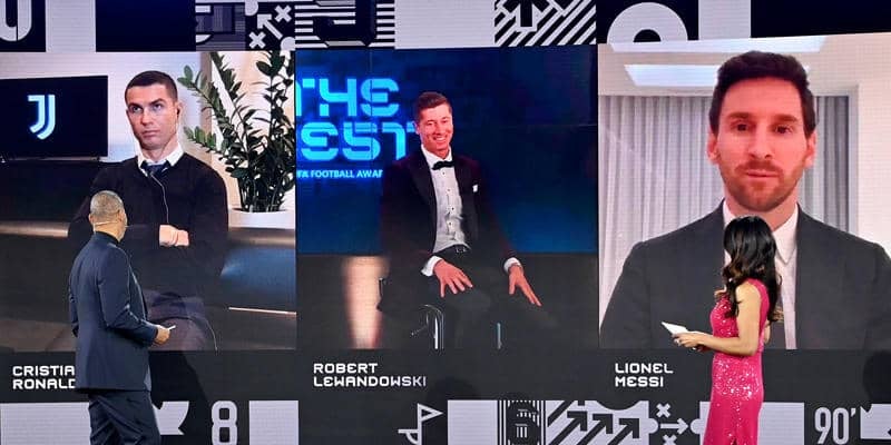 最終候補には、昨年同賞を受賞したFWリオネル・メッシ(バルセロナ/アルゼンチン)と2度受賞しているFWクリスティアーノ・ロナウド(ユベントス/ポルトガル)も選ばれており、コロナ禍の今年は各候補がリモートで対面し、発表の瞬間を待つという方法が取られていた。