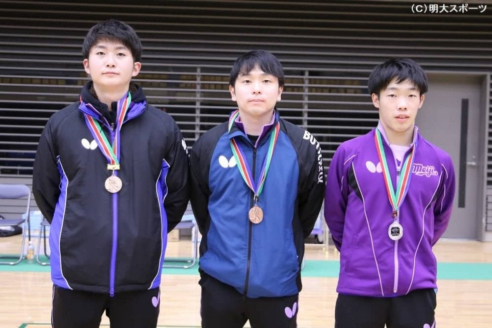 大学自身初の表彰台入りを果たした竹﨑。準々決勝では同校出身の佐藤陽大(法大)と対戦。「随所随所で攻撃もしっかりできた」。カットで粘りつつ、強いフォアハンドで自らポイントを奪い4―2で勝利。実力者のそろう3年生の中ではリーグ戦出場機会に恵まれなかったが、今大会で一気に頭角を現した。