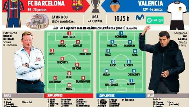 現地時間19日(土)に行われるラ・リーガ第14節バレンシア戦に向けて、バルセロナは既に招集メンバーを発表。前日会見でのロナルド・クーマンのコメントから、スターティングメンバーの変更はあまりなさそうだ。