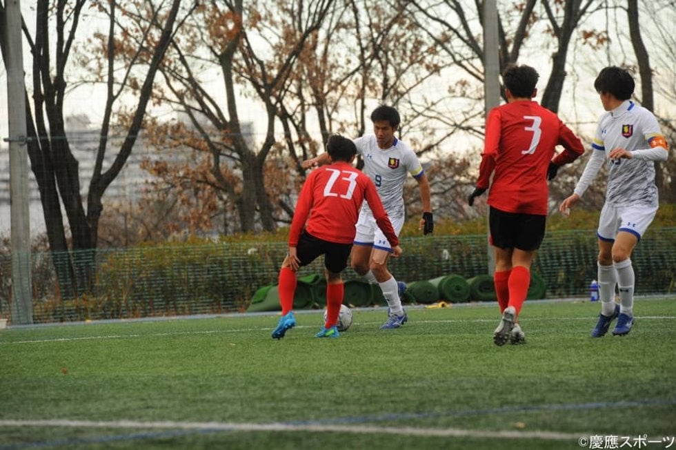 追加点の起点となったボランチ中畝学生トレーナーも務める男の最終戦でのゴールで試合を決定的なものにし、相手は前に出ざる得ない状況になる。しかし慶大も最終節を勝利で収めるという気迫の守備で最後まで失点を許さず試合終了。最終節を勝ちで締めくくった。