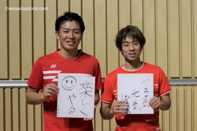 小野寺 やっぱり1回戦目じゃないですかね。1回戦目しっかり勝って、徐々にって感じになると思うので、しっかり1回戦目を勝つっていうことを目標に。先を見ずにやっていきたいですね。ミックスはまあ彼女(吾妻咲弥、スポ4=福島・富岡)の引退試合という感じなので、そこは二人で楽しく、和気あいあいと(笑)。