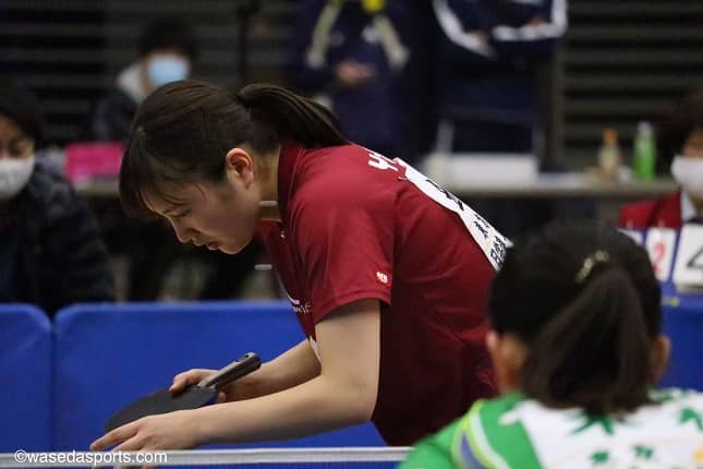 1試合目は相手がカットマンだったのですが、私自身カットマンが非常に得意で、落ち着いて1点1点取ることができました。2戦目の杉本選手(青学大)は高校の同期だったのですが、落ち着いて戦えて良かったです。