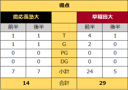 第57回全国大学ラグビーフットボール選手権 VS早稲田大慶大14-29早大12月19日(土) 11:35K.O.@秩父宮…