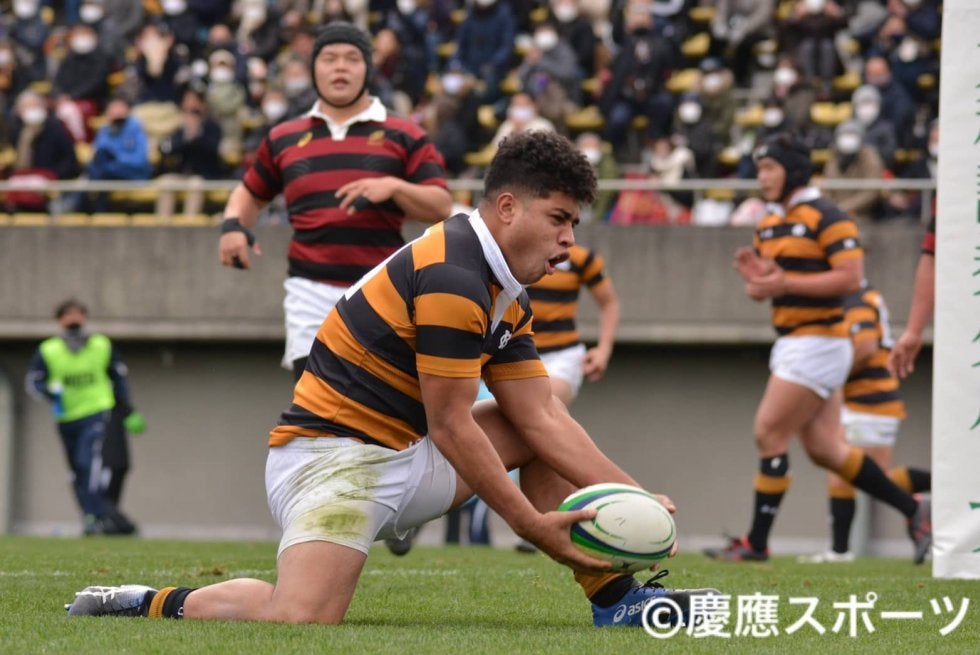 トライを決めチームを鼓舞するFL山本後半に入ってからは敵陣内でアタックする時間が増えた慶大。後半12分にはCTBエノサが追撃のトライを挙げるも、その後は早大守備陣に対して決定機を演出することができなかった。「14-29」でノーサイド。慶大蹴球部の快進撃が止まった瞬間だった。