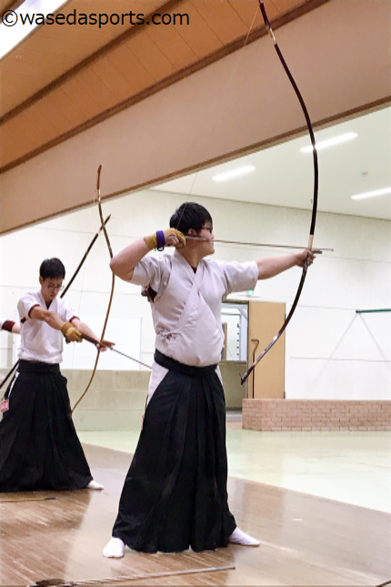 予選では好調の滑り出しをみせた。今年1年生ながら、年間を通して大前を努めた田沼翔太(スポ1=東京・桜修館中教校)や村岡晃輔(文構2=群馬・高崎)は一手競射、計2回の一本競射で安定した射を披露。落を務める千葉智広い(先理3=東京・早大学院)は全射皆中する活躍をみせた。これにより早大は全体で計18中。出場校全体2位という好成績で決勝トーナメント進出を決めた。