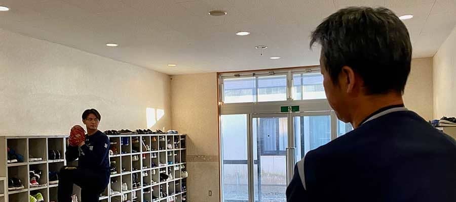 練習後にシャドーピッチングをして、翌日の練習でブルペンに入る。「投げている感じは悪くなかったんですけど、動画を見ると、違うんです」と思い返す大道。シャドーピッチングで出来た動きが、実際にボールを投げてみるとできない。その繰り返しだった。