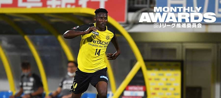 オルンガは2018年夏に柏に加入すると、その年にはJ2降格となったが、昨年は30試合27得点し、最終節の京都サンガF.C.戦(1-13)には1試合8得点という偉業を達成。今季は、規格外のフィジカル能力を見せながら32試合で28点をマークして、2位のエヴェラウド(鹿島アントラーズ)に10点差をつける圧倒的な独走での得点王獲得となった。この活躍を受けて、アフリカ人選手で初めてのMVPを受賞。ベストイレブン入りも果たす“トリプル載冠”となった。