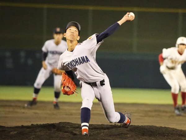 長身から投げ下ろすストレートが魅力の横浜高・松本隆之介