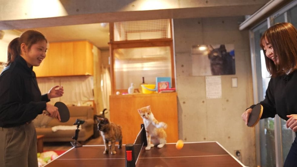 猫と…卓球?卓球が、反射神経と動体視力が問われるスポーツであることはよく知られている。その代表的な技術が、“猫パンチ”か…