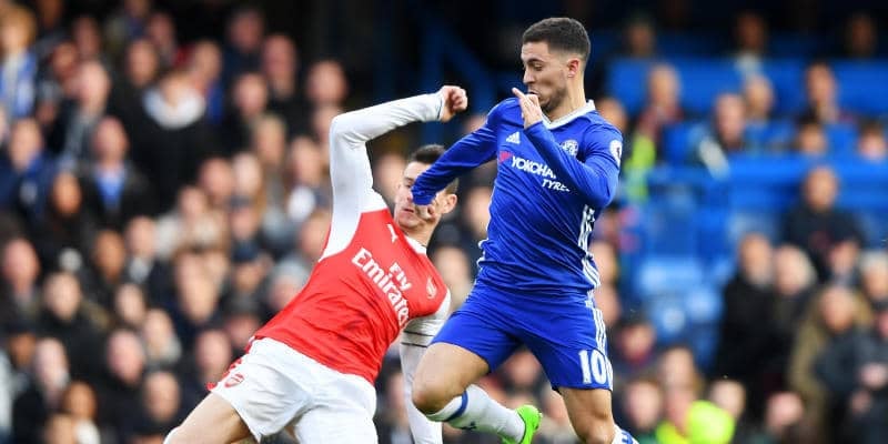 ホームにアーセナルを迎えての“ビッグ・ロンドン・ダービー”を戦ったチェルシー。1点リードの後半、アザールがハーフウェイライン付近でボールを持つと、まずは相手DFローラン・コシエルニーをかわす。さらに、追いかけてきたMFフランシス・コクランのチャージを体でブロックしながら振り切ってそのまま独走。