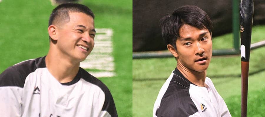 ソフトバンクの谷川原健太(左)と柳町達【写真:藤浦一都】