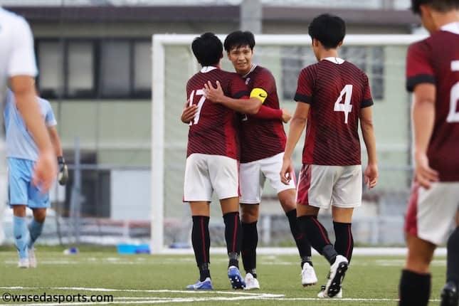 杉山 去年の残留争いという結果を受けたところから僕たちはスタートして、今年1年で強い早稲田を改めて、自分たちの代で証明するというところを掲げてスタートしました。2月3月は活動できましたが、ここでは1月から積み上げてきたものが自分達の中で良い感触としてありました。ただ、コロナウイルスの影響で、活動ができなくなって4月5月を過ごしました。 その中でもコロナの自粛中にできないことを嘆くのではなくて、できることを探してというところで、自分達はチームビルディングのところで、一人一人のつながりという部分を作ることで自粛が開けた時にチームとしてさらなる上積みを発揮できるのではないかと考え、多くのコミュニケーションを様々な方法で取りました。そしてやっと自粛が明け、活動が再開した時に自粛前よりもチームのつながりというのがより強固になって、ある程度やるのではないか、という自信を持って関東リーグが開幕しました。ただ前期は右も左も分からないというか、自分たちの立ち位置がわからない中でスタートして。それでも、それまでの半年間の積み上げ、それは戦略の部分もそうですし、チームとしてのコミュニケーションの部分であったり、つながりの部分というのがピッチ内でも表現できて、前期をああいった形で終えることができて。ある程度の結果を手にできたのではないかなと思っています。ただ、やはり勝負どころの試合で勝てないというのは1年通しての課題としてあって、そこは自分たちの至らない点というか、弱さとして浮き彫りになったなというのをリーグとして感じました。そこは絶対に全国大会に繋げなければいけないなと思っています。