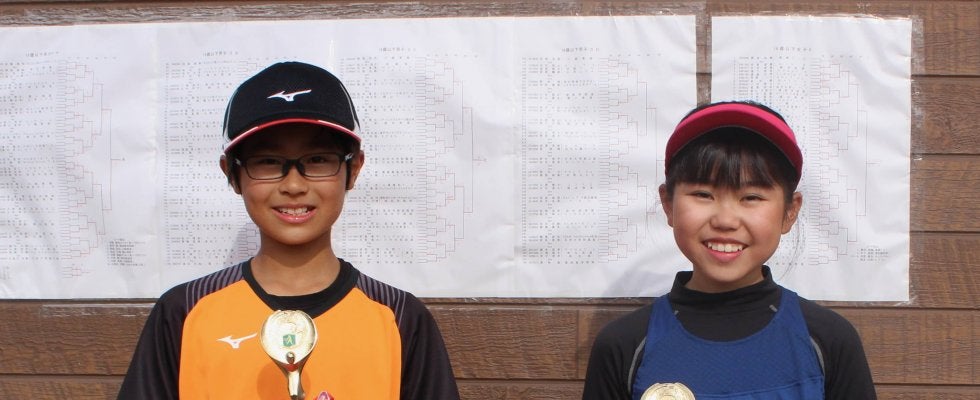 12歳以下男子シングルス優勝の奈良恒輝選手と女子シングルス優勝の島村桜良選手