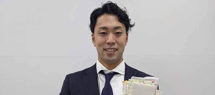 「目標がその日その日を支配する」。松本が持参したのは、コロナ禍で昨夏の甲子園が中止となった際に野球部員1人1人に贈られた名将の色紙だ。黒筆で書かれた達筆な一品。「高校時代から念頭に置いて、練習してきました。その気持ちを忘れずにプロの世界でも頑張っていきたいと思います」と語った。DeNAファンでエース今永のサインを書かれたグッズも持ち込み、「自分の宝物です。憧れている投手。見て学ぼうと思います」と明かした。