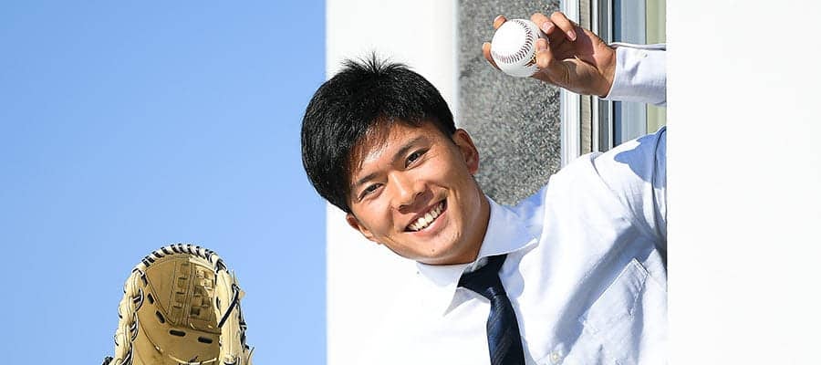 この日、ノックの際には赤と黒のツートンカラー、キャッチボールでは白に近いクリーム色のグラブをはめていた。白い方が試合用で、昨年から東京六大学リーグ優勝(白星)を目指す意味で、演技を担いで新調。実際、主将兼エースとして臨んだ秋季リーグで6勝0敗、リーグトップの防御率0.39をマークし、早大を10季ぶりのVへ導いた。