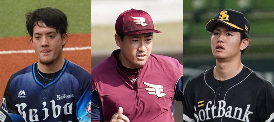 西武・與座海人、楽天・牧田和久、ソフトバンク・高橋礼(左から)【写真:荒川祐史】