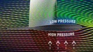 フォイリングの秘密はハイドロフォイル(水中翼)にあります。水中で揚力を生み出すフォイルの考え方はセールの原理と同じです。風がセールを流れることで気圧差が発生し、揚力=推進力となります。水中のフォイルも同じで、上方向に向かって揚力が生まれて船が浮き上がります。