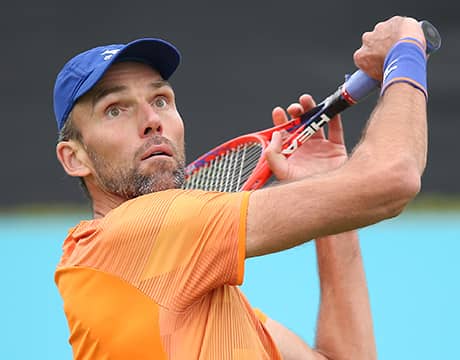 身長210センチで41歳のカルロビッチは、この日3度サービスゲームを破られる。自身は1度もブレークポイントを握れず、59分で敗れた。