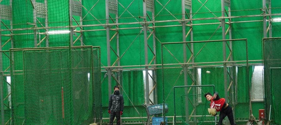 それなりの対策はあった。縦42.5メートル、横46メートルの室内練習の真ん中に、天井まで届くようなネットが引かれた。新人選手たちはそれぞれ、約20メートルの距離からネットへ向かい、「遠投するつもり」で角度をつけてボールを投げ込み続けた。