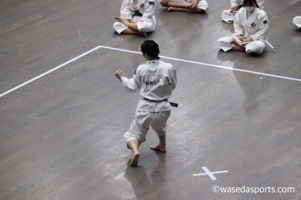 今大会でも多くの演武者が受賞する結果となった。単独演武の部では、級拳士女子の部での小林果鈴(文2=Harrison)に加え、有段女子の部では籾美吹(社2=大阪産業大附)が優秀賞を受賞。組演武の部では、有段・級女子の部で上重美桜(商3=新潟・長岡)・氏平鷹子(政経2=千葉・船橋)、小西清香(法3=茨城・東洋大付牛久)・小圷紗愛(法1=茨城・水戸一)、首藤けい(スポ3=神奈川・横浜共立学園)・関音葉(文構1=東京・西)が安定の実力を発揮し、優秀賞を受賞した。また、早大の活躍はこれだけにとどまらず、有段男子の部では井上主将・宇田樹(教1=東京・早実)、芝田健自(商3=東京・城北)・藤井陸(社1=東京・早実)が受賞、有段男女の部では岩田悠一朗(人4=埼玉・川越東)・遠藤直(文構1=東京・早実)が受賞し、鍛錬の成果を発揮した。しかしながら井上主将は、「練習期間も短く全体的に仕上げられなかった印象があります。」と語り、日本一に向けてまだまだ高みを目指す志を見せた。