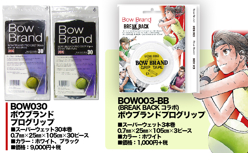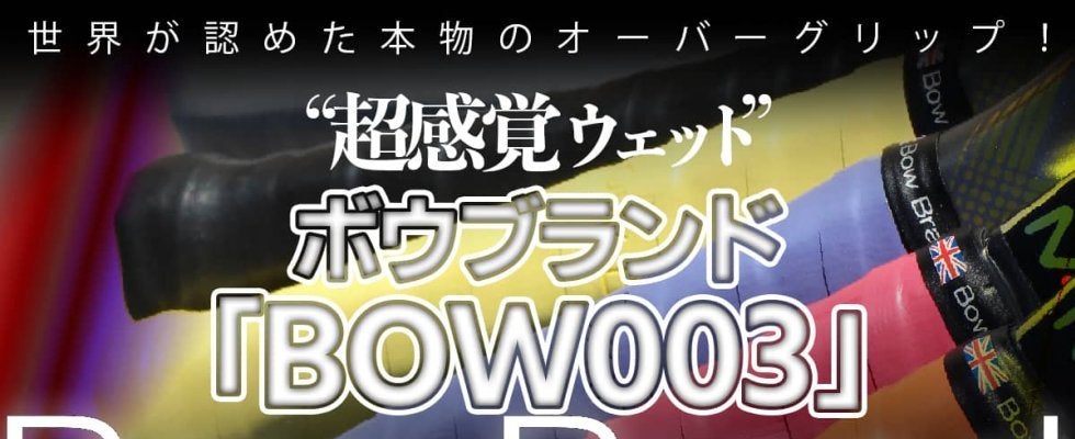 オーバーグリップ・テープは、もちろん世界各地で発売となっている。だが、その質にかけては日本製に勝るものはないという。そのトップ・オブ・トップと言うべきものが、「BOW003」である。というのも、製造工場は今では上場企業となり、企業理念から同じ質のものを他ブランドで作らないと決めているからだ。アメリカやヨーロッパに逆輸出を行っており、高い人気を誇っているというのも、うなずける話である。