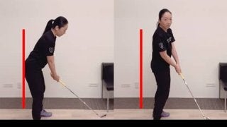 起き上がりというのは、スイング中にアドレス時に作った前傾角度が失われて、骨盤がボール方向に近づいてしまうスイングエラーです。