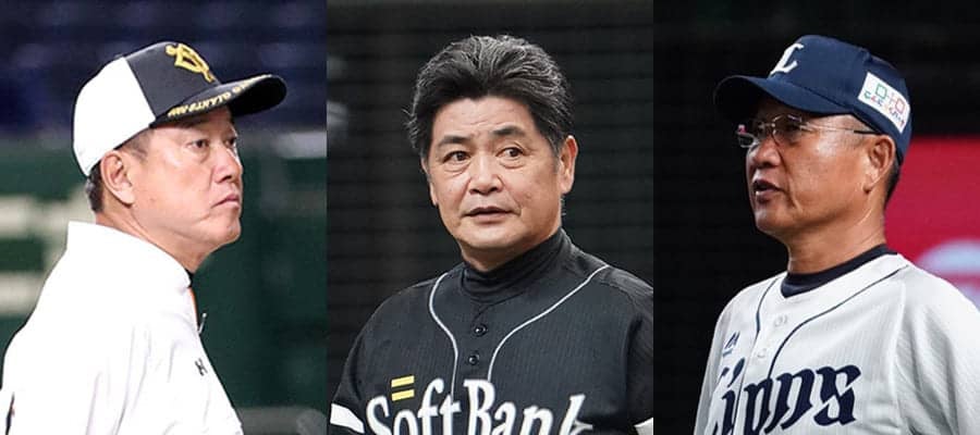 巨人・原監督、ソフトバンク・工藤監督、西武・辻監督(左から)【写真:読売巨人軍、荒川祐史】