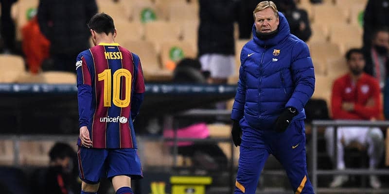 クーマン監督、眼前でタイトル逃すも「後退ではない」一発退場のメッシにも言及 | サッカー