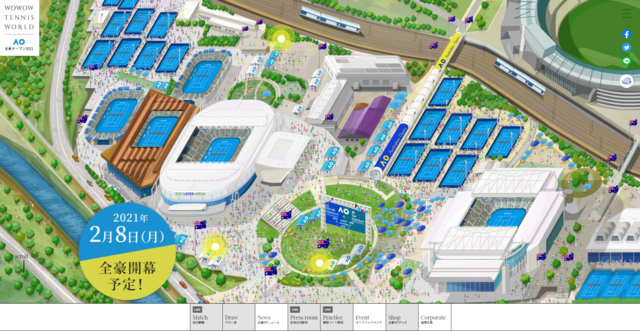 本格スタートは2月8日(月)。現在は、オンラインイベント「テニワのオンライン楽屋」を実施中。全豪オープンテニス期間中は、一部試合の無料配信、試合後の会見配信、試合前の練習コート配信、ナイトセッション前に「テニワのオンライン楽屋」の配信を行う。
