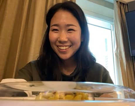 「着いた日は練習できないと聞いていて、着いた日が0日目とすると2日目からはできると聞いていました。なので着いた次の日は縄跳びとか体幹をやっていたんですけど、キャンセルになっちゃって。これは動いとかないとまずいなと思ったので、トレーナーさんに練習メニューを送ってもらって部屋でできるエクササイズをやっていました」